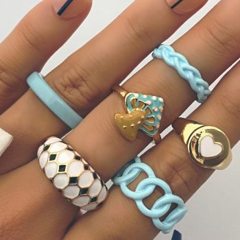 Fleepmart 5pcs/Set Bohemia Gold Color Finger RingsFashionable Heart Geometric Design For Women Female Jewelry Party Rings