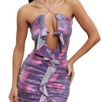 Fleepmart Sexy Skinny Sequinned Backless Halter Party Mini Dress Women Luxury Swinging Neck Bodycon Dresses Female Midnight Club Vestidos