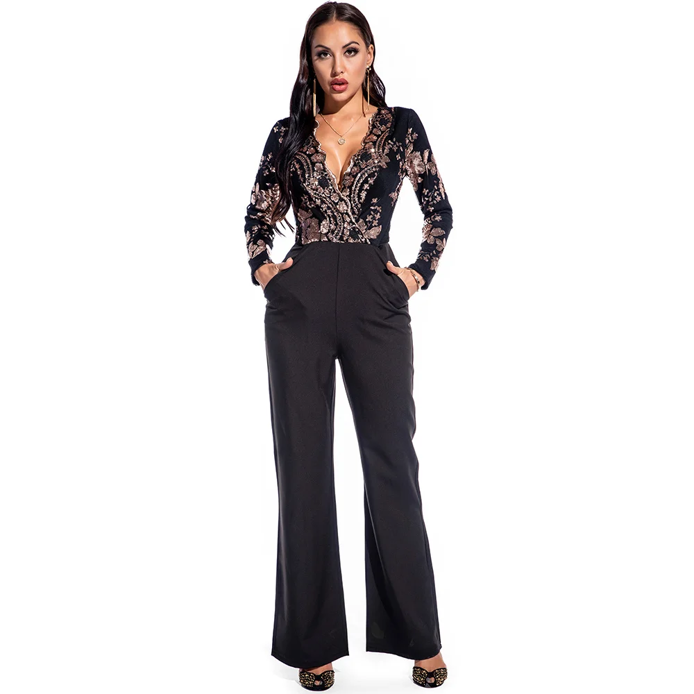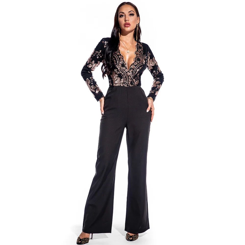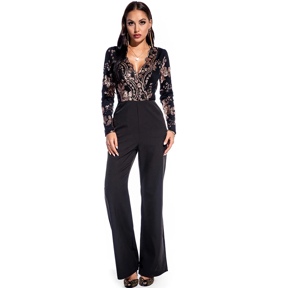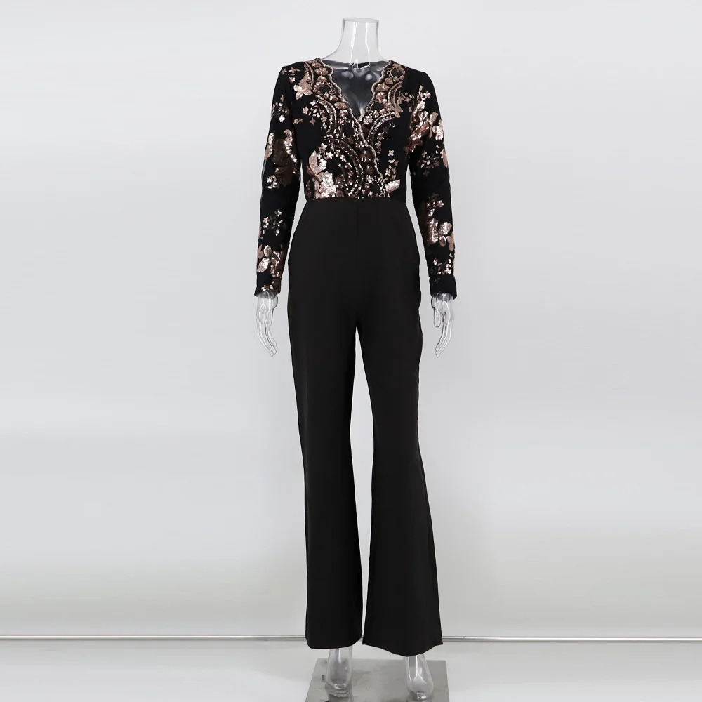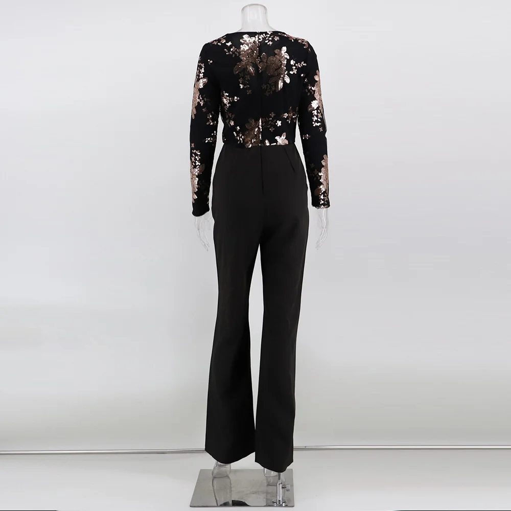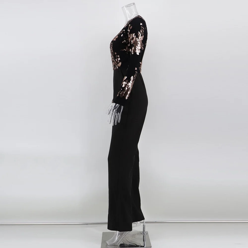 Fleepmart Sexy body Long sleeve Sequin jumpsuit women bodycon bodysuit rompers woman Club outfits party jumpsuits overalls dropshipping HL