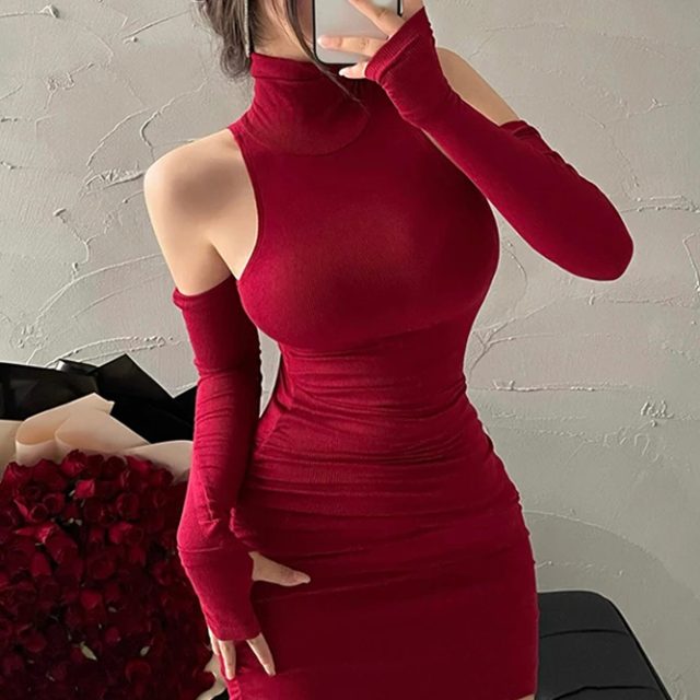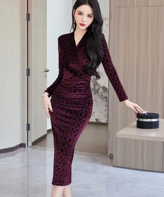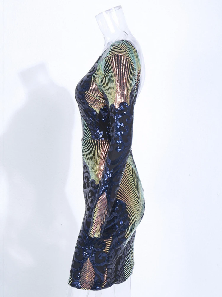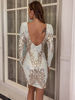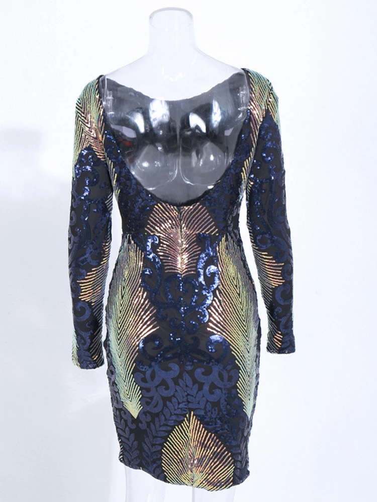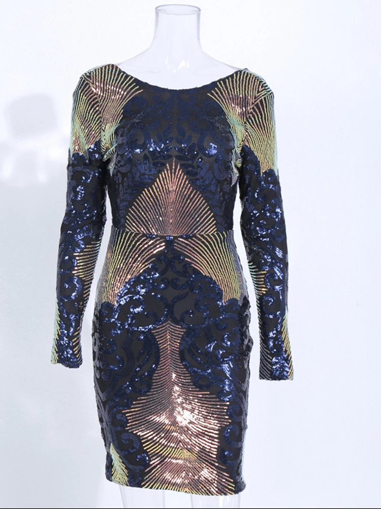 fleepmart 2021 Sexy Full-Sleeve Midi Sequins Cocktail Dress O-Neck Backless Mini-Length Wrap Vestidoes Party Women Party Prom Gowns 2020 New