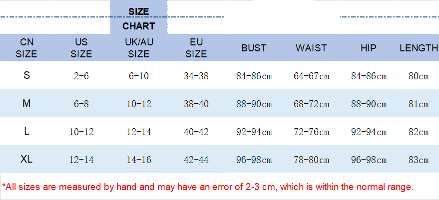 *Every dress has a unique size chart,please compare your measurement to the measurements provided in the size chart.And do not measure with clothing except undergarments.
