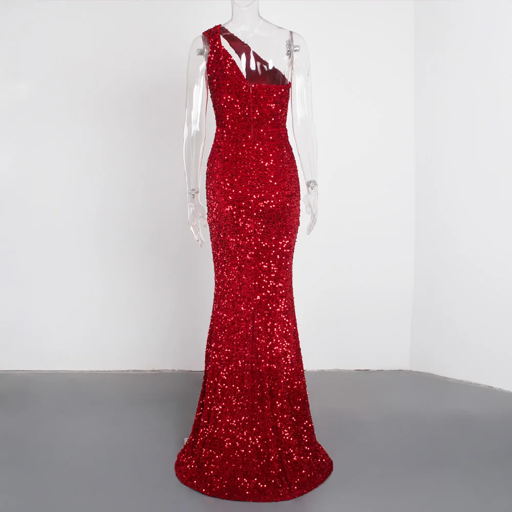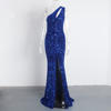 fleepmart 2021 Sexy Hole Cut out Grey Sparkle Sequins Maxi Dress Stretch Split Sleeveless Floor Length Mermaid Party Dress Blue