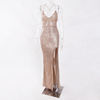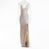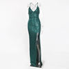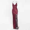fleepmart Sexy V Neck Lace Up Sequined Cocktail Party Dress Backless Split Leg Sleeveless Summer Long Dresses Evening Wedding Gown