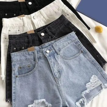 Fleepmart Summer Sexy High Waist Perforated Plus Size Strap Super Shorts Casual Women’s Denim Shorts Jeans