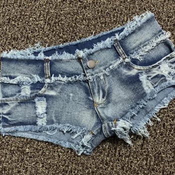 Fleepmart Ultra-low Rise Denim Shorts Women’s Skinny Sexy Hole Hot Pants Short Femme
