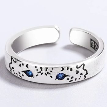 Fleepmart Cute Retro Leopard 925 Sterling Silver Female Resizable Opening Rings