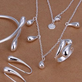 Fleepmart Fine 925 sterling silver jewelry sets female lady women wedding drops rings earrings bangles necklace fashion jewelry set