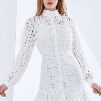 Fleepmart Elegant Solid Color Hollow Out Summer Dress For Women Long Sleeve High Waist Dresses Female Womens Clothing 2021