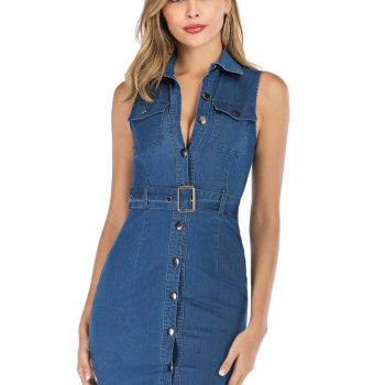 Fleepmart Sexy sleeveless Denim Summer Dress Women vintage Mini Bodycon dress elegant bandage wrap club Party Dresses clothes Vestidos New