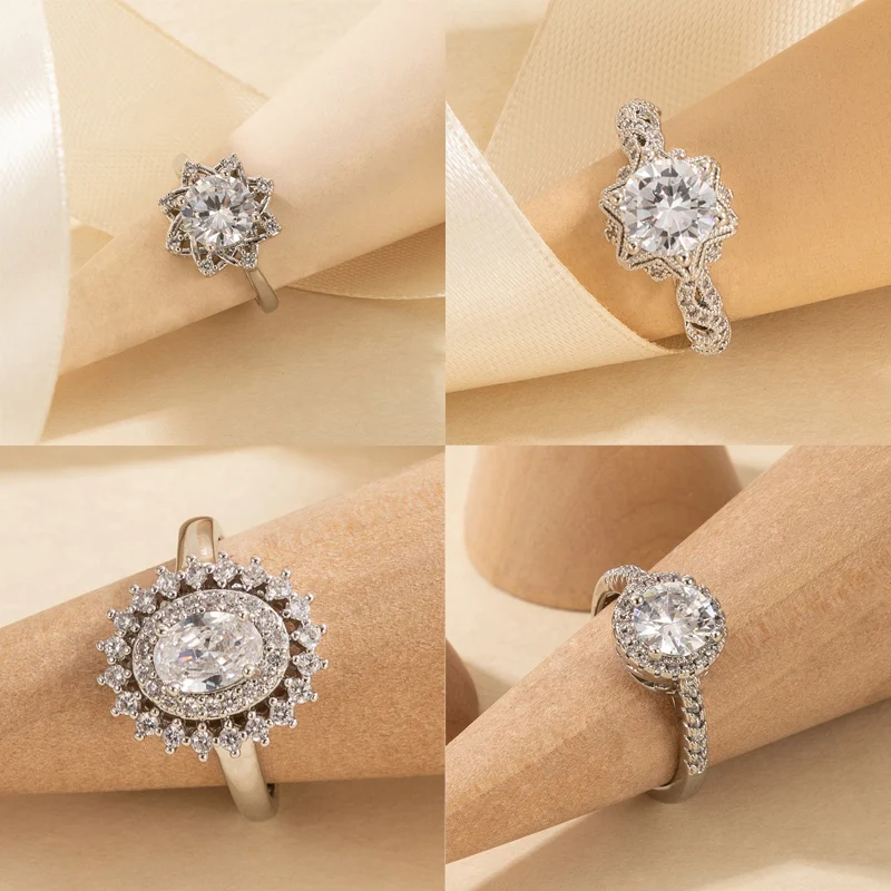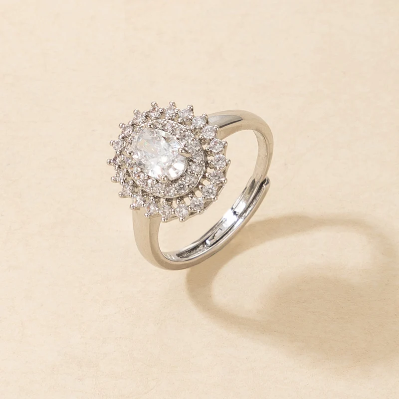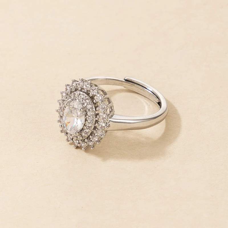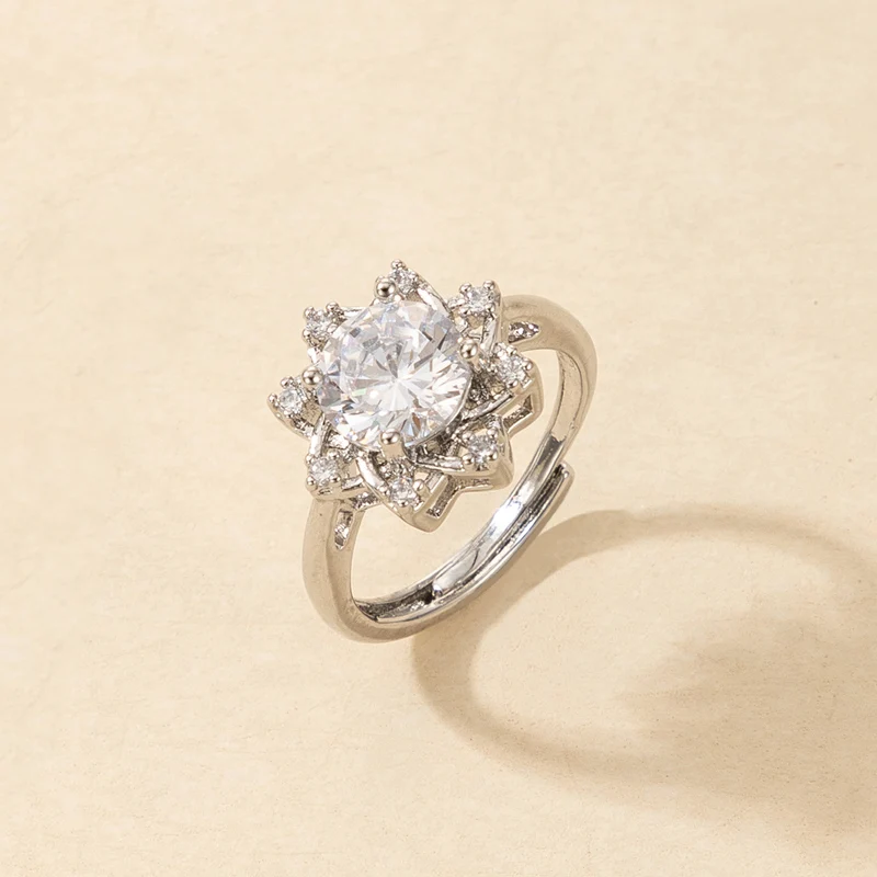 Fleepmart Luxury Clear Crystal Stone Wedding Ring for Women Silver Color Copper Star Flowers Joint Ring Party Jewelry Accessories