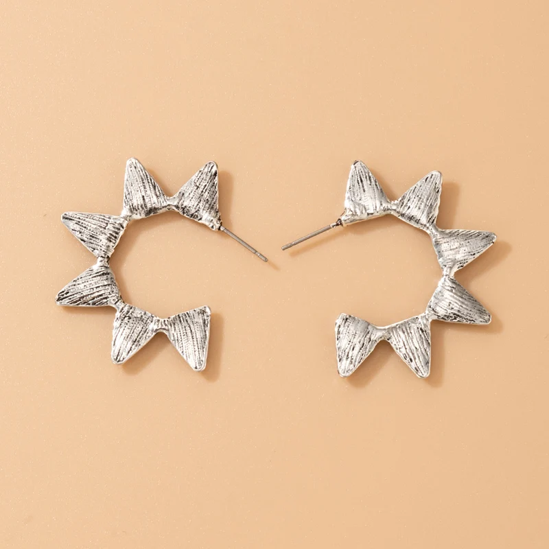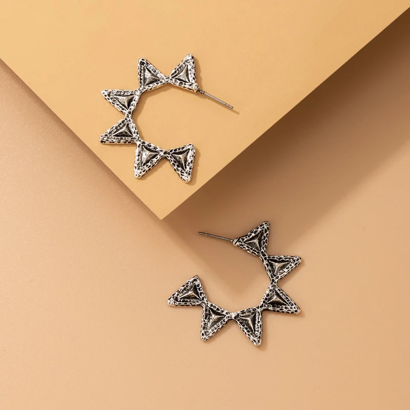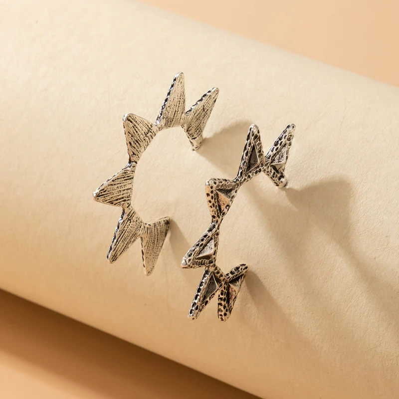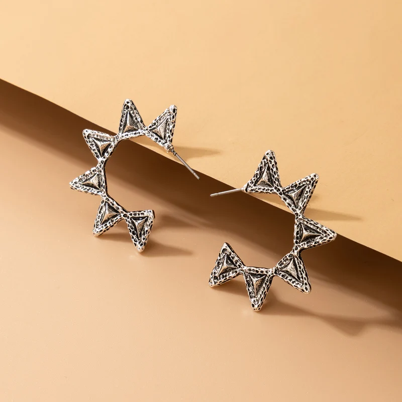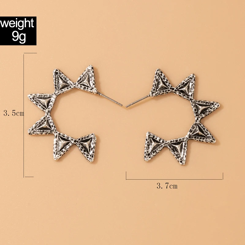 Fleepmart Vintage Silver Color Rhombus Stud Earrings for Women Alloy Metal Geometric Gypsy Jewelry сережки