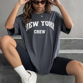Fleepmart Oversized Letter Graphic T-shirt Women 2023 Summer Soft O-neck Short Sleeve Tees Female Casual Loose Higt Street Top