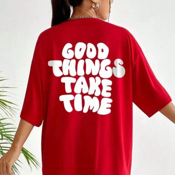 Fleepmart Good Things Take Time Art Letter T Shirts Women Fashion Cotton Tops O-Neck Casual Tee Shirt Summer Comfortable Sportswear