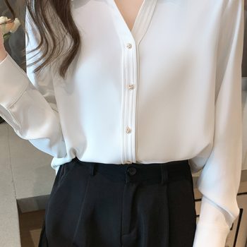 Fleepmart Fashion Women Silk Shirts Satin Blouses Women Long Sleeve Shirts Tops Woman White Shirt Blouse Woman V-neck Ladies Shirt