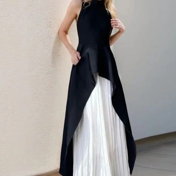 Fleepmart Sexy Two Piece Set Women Halter Sleeveless Open Back Top High Waist Pleated Maxi Skirt Slim Women’s Suit Summer New