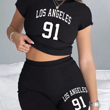 Fleepmart Women Slim Crop T-Shirts & Shorts Two Pieces Set Brooklyn New York City Art Letter Prints Tops Fashion Modal Cotton Soft Clothes
