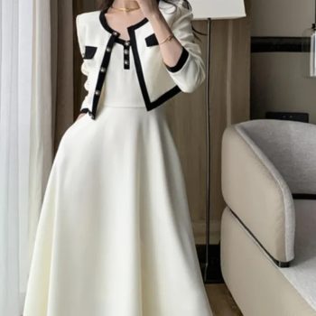 Fleepmart Elegant 2-Piece Dress Set for Lady Short Coat A-Line Midi Camisole Dresses Slim Korean Fashion Female Suit Spring Autumn New