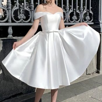 Fleepmart Simple Short Wedding Dress Satin Ivory A-line Wedding Gown With Pockets Custom Made Corset Bridal Dress