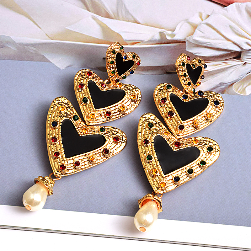 Fleepmart Metal LoveHeart Long Earrings High-quality Crystal Drop Earring Fashion Jewelry Accessories For Women