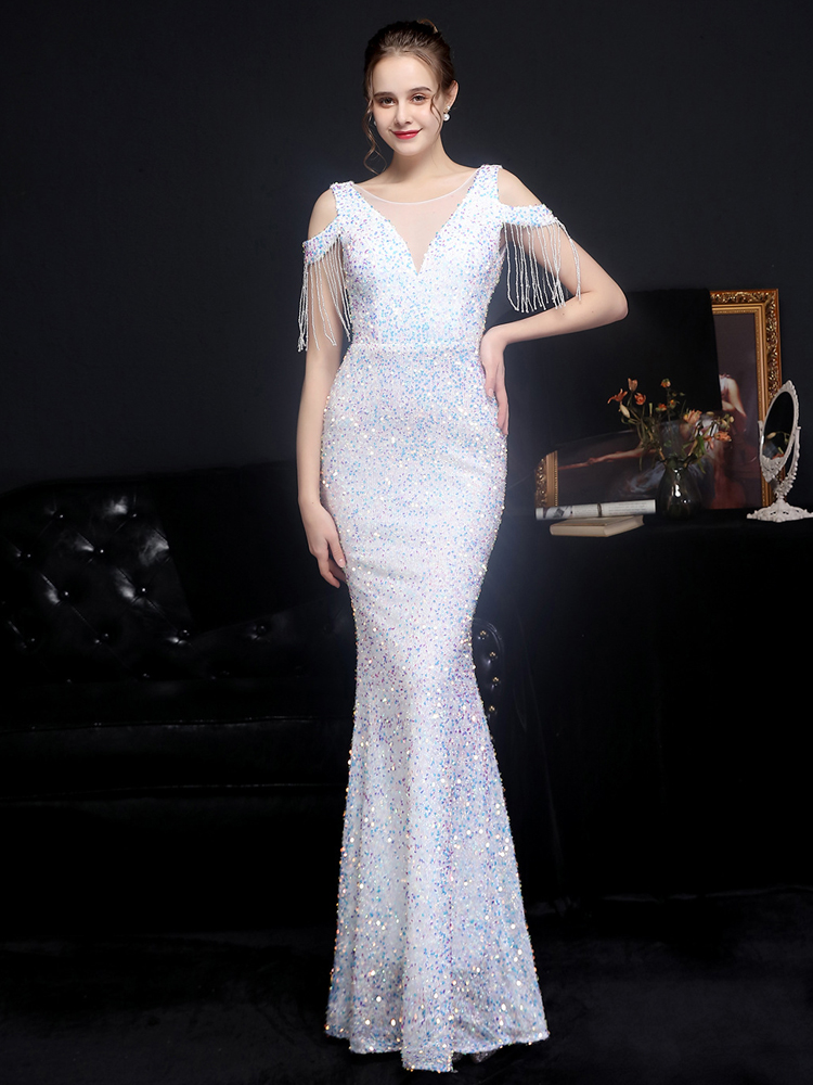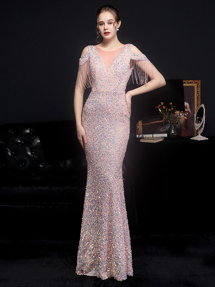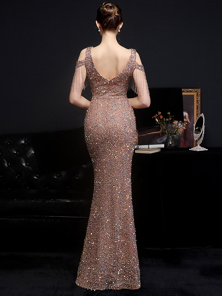 Women 2021 New Off Shoulder Party Bodycon Maxi Dress Elegant V Neck Gold Sequin Evening Dress