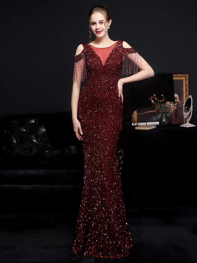 Women 2021 New Off Shoulder Party Bodycon Maxi Dress Elegant V Neck Gold Sequin Evening Dress