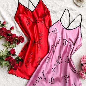 Fleepmart 2 Pcs Sexy backless ice silk slip dress summer pajamas short women’s home dress simulation silk nightdress casual night