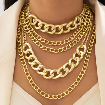 Fleepmart Multi-Layered Big Thick Gold Color Chain Necklace Gothic Hip Hop Rock Grunge Bohemian Necklace Unisex Jewelry Party Gifts