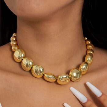 Fleepmart Punk Gold Color Rotundity Adjustable Necklaces for Women Geometry Beaded Short Necklace Hip Hop Jewelry Party Gift