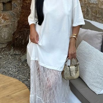 Fleepmart Lace Dress Round Neck Sweater Stitching Lace Skirt 2025 Spring and Summer Sexy Spice Women’s Dress