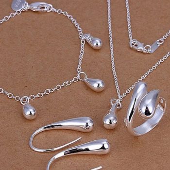 Fleepmart 925 sterling Silver Wedding women high-quality classic drop bracelets earrings necklace rings fashion jewelry sets