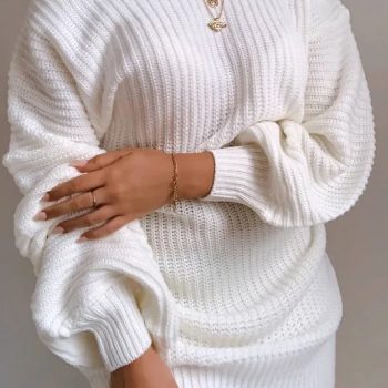 Fleepmart Casual Loose Knitted Sweater for Women Autumn and Winter clothes One-Word Collar Ladie’s Dresses Louj Dress Droppshipping Tops