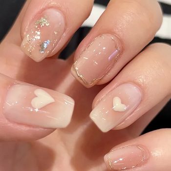 Fleepmart 24PcsSet Wearable Press On Nail Art Full Cover Manicure Ballet Cute Nails False Removable Fake Nails With Glue Short Square Head