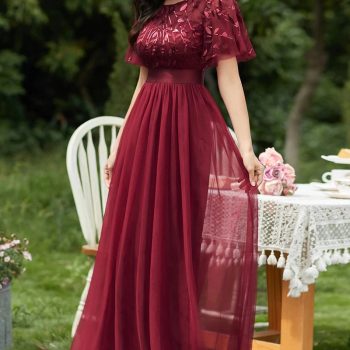 Fleepmart Bridesmaid Dress Gorgeous Sequin Print Maxi Long Wholesale 2022 Evening Dresses with Cap Sleeve Vestidos De Gala