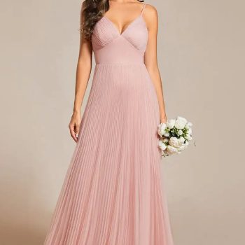 Fleepmart Elegant Evening Dresses Deep V Neck Spaghetti strap Flounce Sleeveless Mesh2024 Pink Bridesmaids Dresses