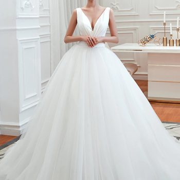 Fleepmart Modern Wedding Dresses 2022 Sexy V-Neck Princess Ball Gown Wedding Gown Royal Bridal Dress vestido de noiva