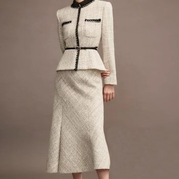 Fleepmart Runway Spring Autumn New Designer Belt Buttons Jacket Tops Slim Skirts Elegant Vintage High Quality Fashion Office Women’s Set