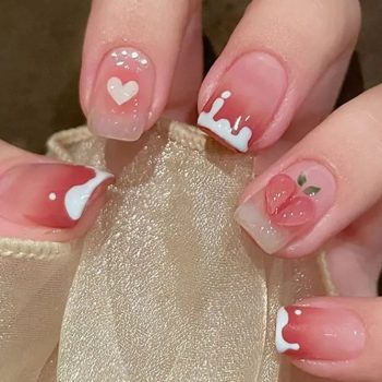 Fleepmart 24Pcs/Box Sweet Short Round/Square Head False Nail Art Full Cover Detachable Artificial Fake Nails Ballerina Press on Nails Tips