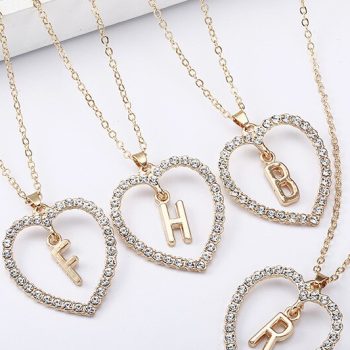 Fleepmart New Arrival 2022 Fashion Simple Gold Letter Heart Initial Necklace & Pendants Double Rhinestone Choker Necklace For Women