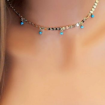 Fleepmart Fashion Vintage Gem Stone Green Turquoises Choker Necklace Girlfriend Gift Minimal Necklace Copper Chain Necklaces Jewelry Gifts