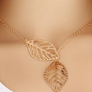 Fleepmart New Fashion Jewelry Gold And Silver Color Two – Leaf Pendant Necklace Multi – Layer Statement For Women 2022 Necklace