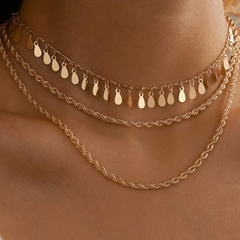 Fleepmart Punk Leaf Tassel Chain Choker Necklace 2022 Trendy Multilayer Gold Alloy Metal for Women Bohemain Jewelry Gift