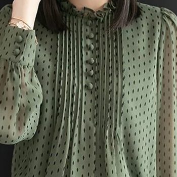 Fleepmart Women Spring Autumn Style Chiffon Blouses Shirts Lady Casual Long Sleeve O-Neck Polka Dot Printed Chiffon Blusas Tops