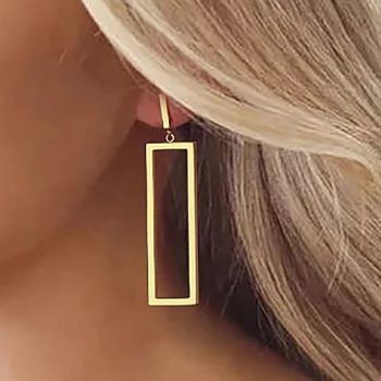 fleepmart New Trendy Titanium Steel Gold Color Pendant Earring Fashion Jewelry Rectangle Dangle Earrings For Women Brincos Simple Earrings