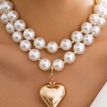 Fleepmart Gothic Hollow CCB Heart Shaped Pendant Necklace Fashion Imitation Pearl Chain Clavicle Necklace Women Aesthetic Jewelry