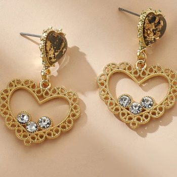 Fleepmart Charming Heart Drop Earrings for Women 2021 Trendy Colorful Rhinestone Flowers Leaf Geometric Tassel Dangle Jewelry