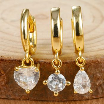 Fleepmart 3PCS Stainless Steel Zircon Heart Minimal Hoop Earrings Set For Women Geometry Round Water Drop Pendant Earring Fashion Jewelry