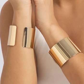 Fleepmart Exaggerated Big Heavy Metal Glossy Open Bangles Women Punk Big C Shape Gypsy Wide Cuff Armband Arm Bracelets Jewelry Steampunk