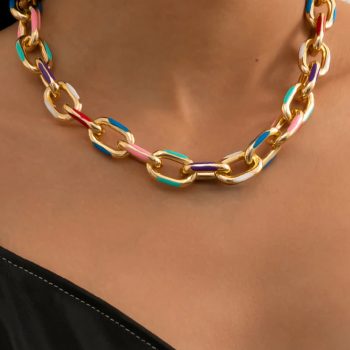 Fleepmart .Z Punk Chunky Thick Aluminium Curb Chain Choker Necklace Goth Gothic Printed Short Clavicle Necklaces Collar Jewelry