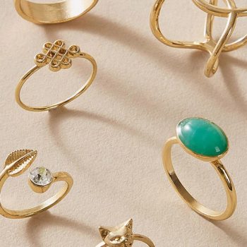 Fleepmart 7pcs/sets Lovely Animal Gold Color Ring Sets for Women Green Rhinestone Leaf Geometric Party Jewelry Wholesale