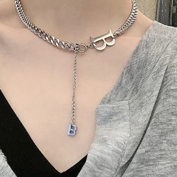 Fleepmart Luxury Stainless Steel Letter B Pendant Necklaces Top Quality Korean Fashion Punk Jewelry Chain Chunky Necklace For Women Girl